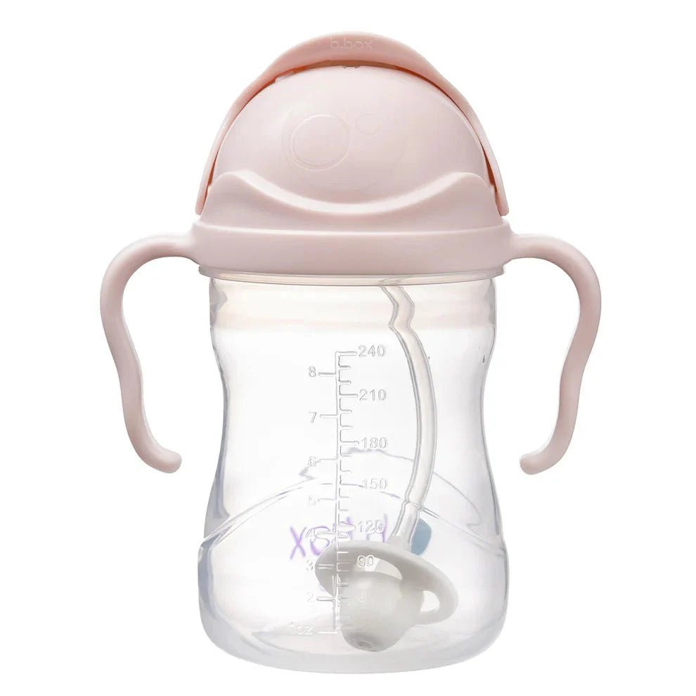 b.box Sugerørkopp – Rosa gjør overgangen fra flaske til kopp naturlig og morsom for små barn. Det unike, vektede sugerøret følger væsken uansett hvordan koppen holdes, slik at barnet kan drikke selv – sittende, stående eller liggende.