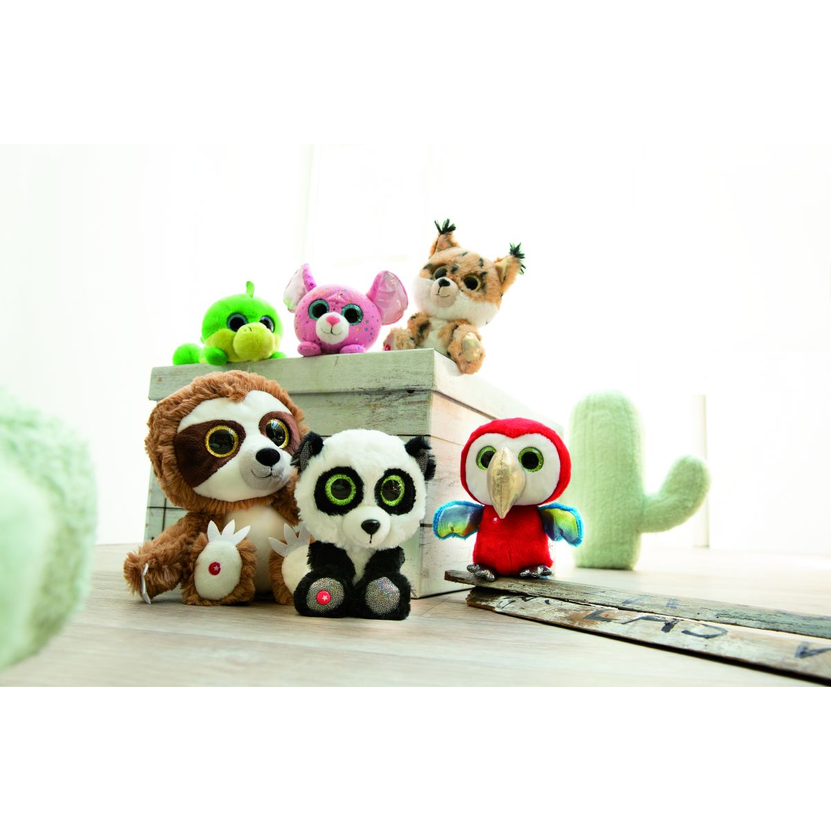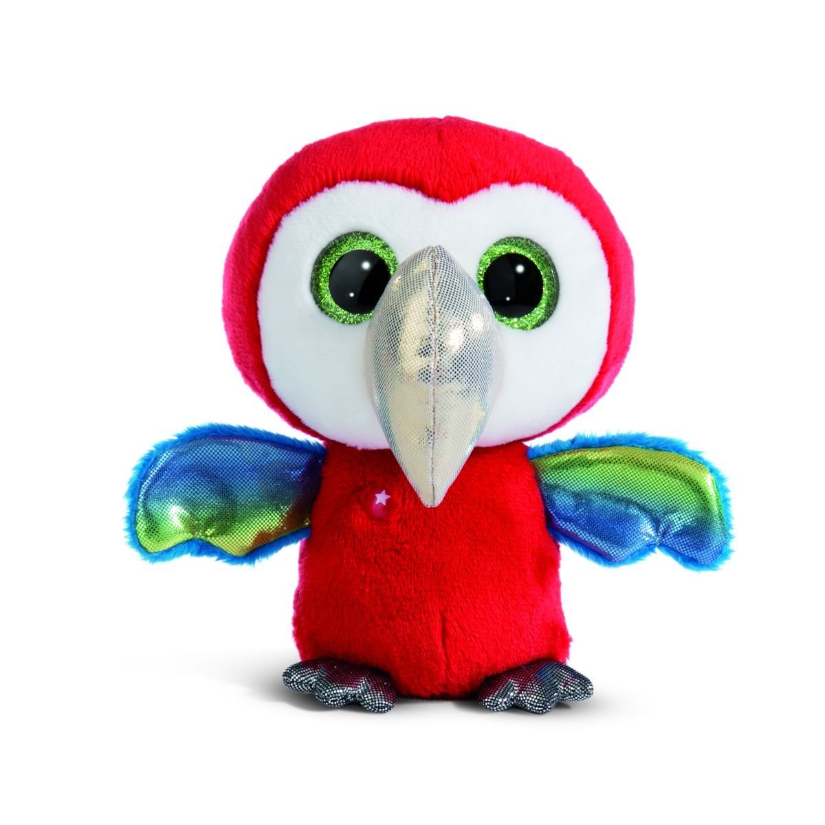 Papegøyen Pelotti fra NICI Glubschis er en sjarmerende og fargerik plysjbamse som sprer glede med sitt livlige utseende og vennlige uttrykk. Med store glitrende øyne, skimrende nebb og regnbuefargede vinger, blir Pelotti raskt en favoritt både for små barn og samlere.