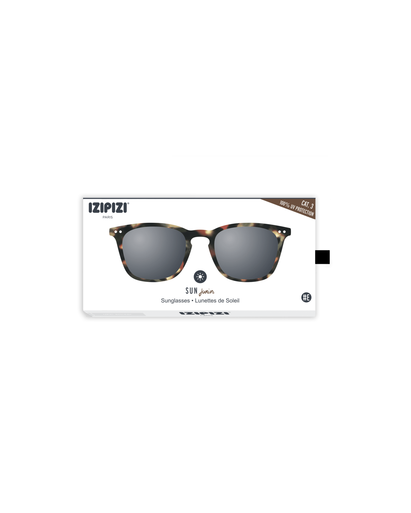 IZIPIZI #E Junior SUN i Tortoise-design kombinerer tidløs stil med høy komfort og beskyttelse. De firkantede solbrillene er inspirert av voksenmodellen og gir 100 % UV-beskyttelse (kategori 3) mot skadelige solstråler. Fleksible stenger med fjærhengsler gjør dem komfortable for barn mellom 5 og 10 år – ideelle til alt fra strand og ferie til hverdagsbruk.